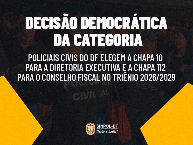 Chapa 10 vence eleições do Sinpol-DF e assumirá Diretoria Executiva no triênio 2026/2029